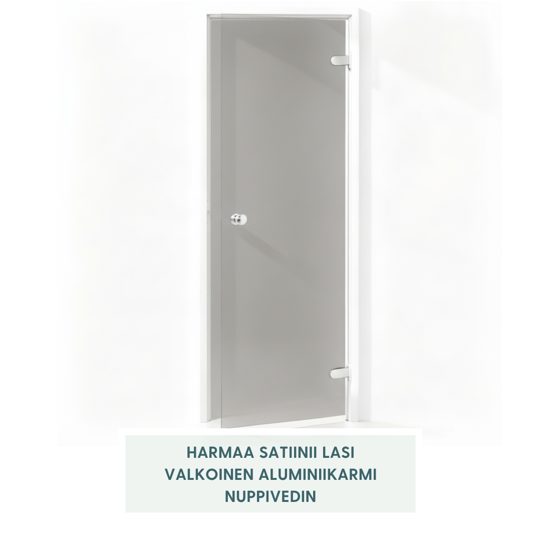 Kylpyhuoneisiin ja höyrysaunaan suunniteltu lasiovi.