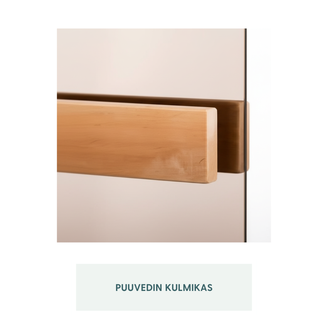 Oven karmit valmistetaan kestävästä liimapuusta (leppä), joka elää kauniisti saunan olosuhteissa ja kestää hyvin lämpöä sekä kosteutta. Lasiovi tuo saunaan valoa ja avaruutta, mutta säilyttää silti saunalle ominaisen rauhallisen tunnelman.