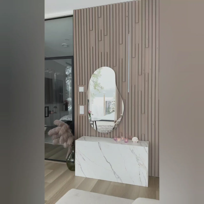 Der Sand-Wandspiegel ist ein einzigartiges und wunderschönes Dekorationselement, perfekt für ein Badezimmer oder jeden anderen Raum.