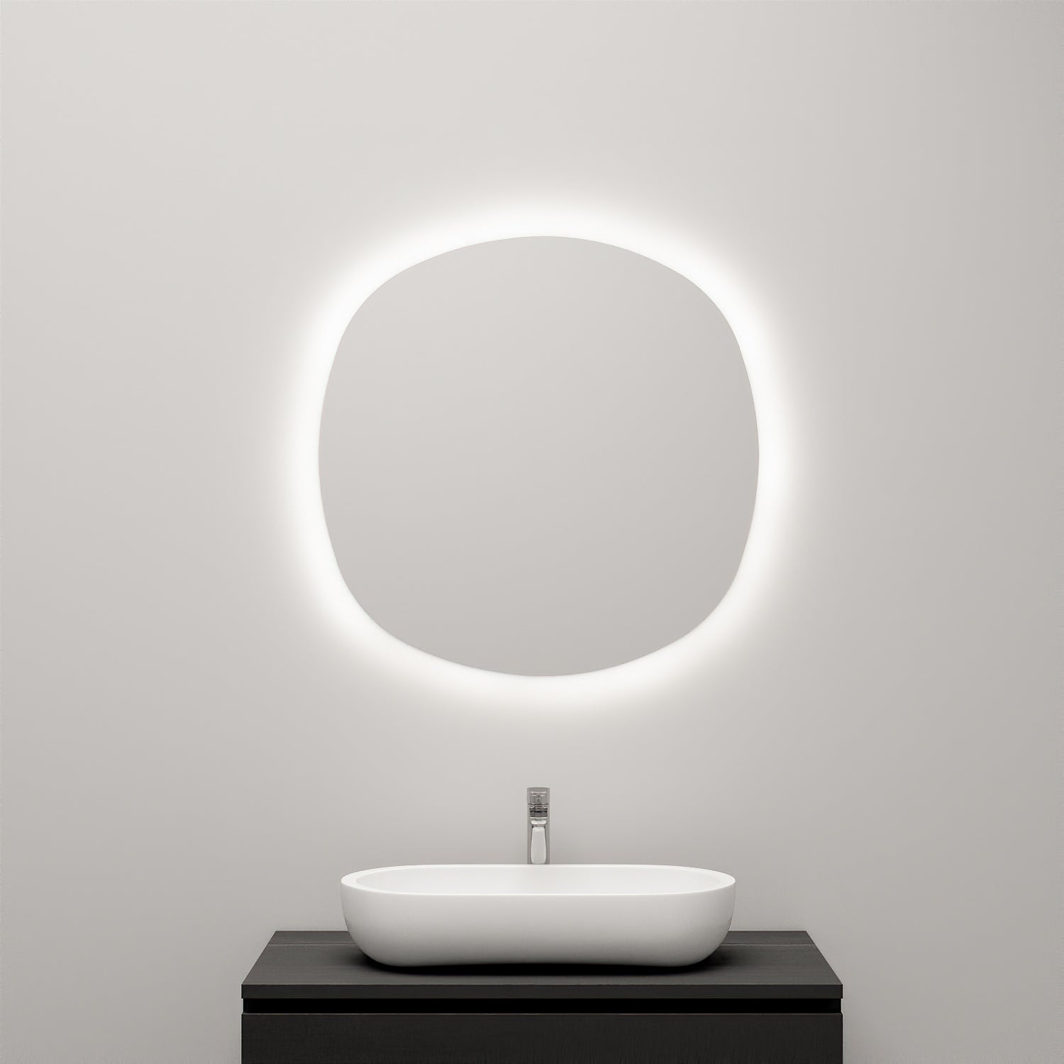 The mirror is available in a warm 3000K, a neutral 4000K shade and colour-changing backlighting (RGBW). The light power is 6W and the light output is 450lm per meter. The light illuminates directly onto the wall, so it does not glare to the side.