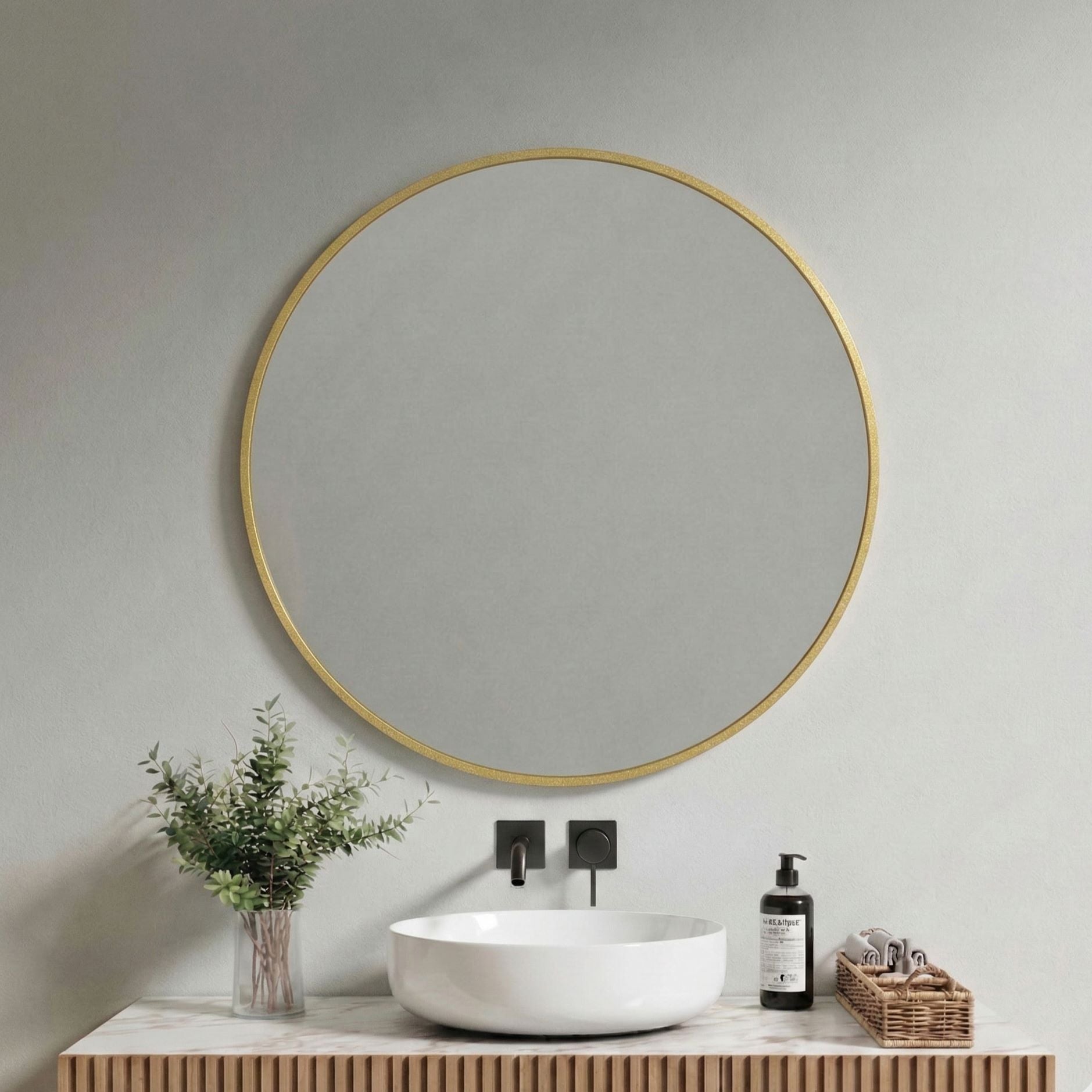 The round mirror is the classic of interior design. Its soft shape brings balance and space to a room and beautifully reflects light. The delicate aluminium frame emphasizes the shape of the mirror without looking heavy.