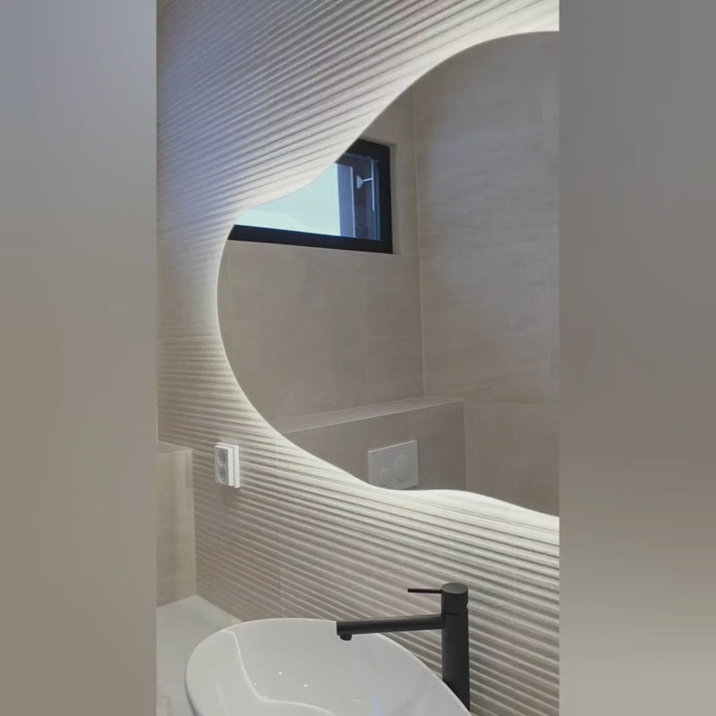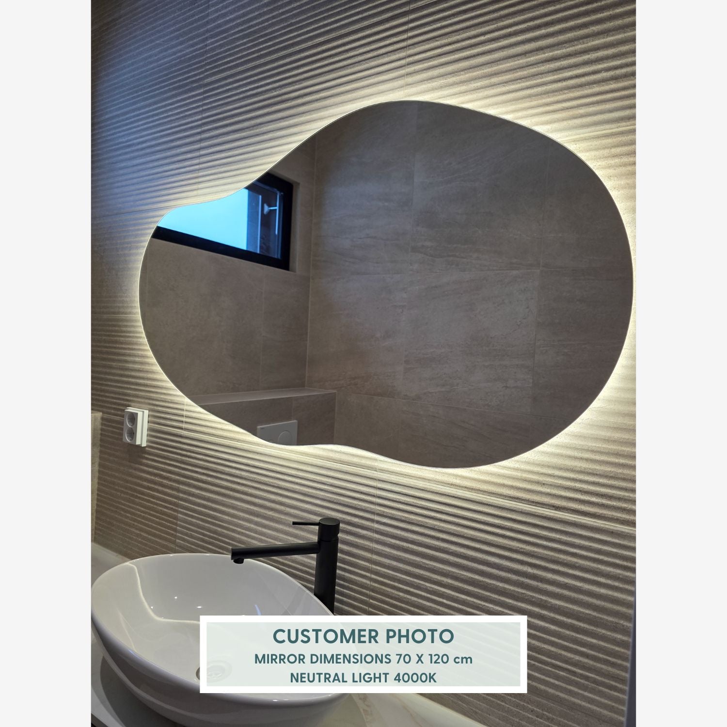 Sand - Asymmetrisk Badrumsspegel med Belysning (70x120cm)