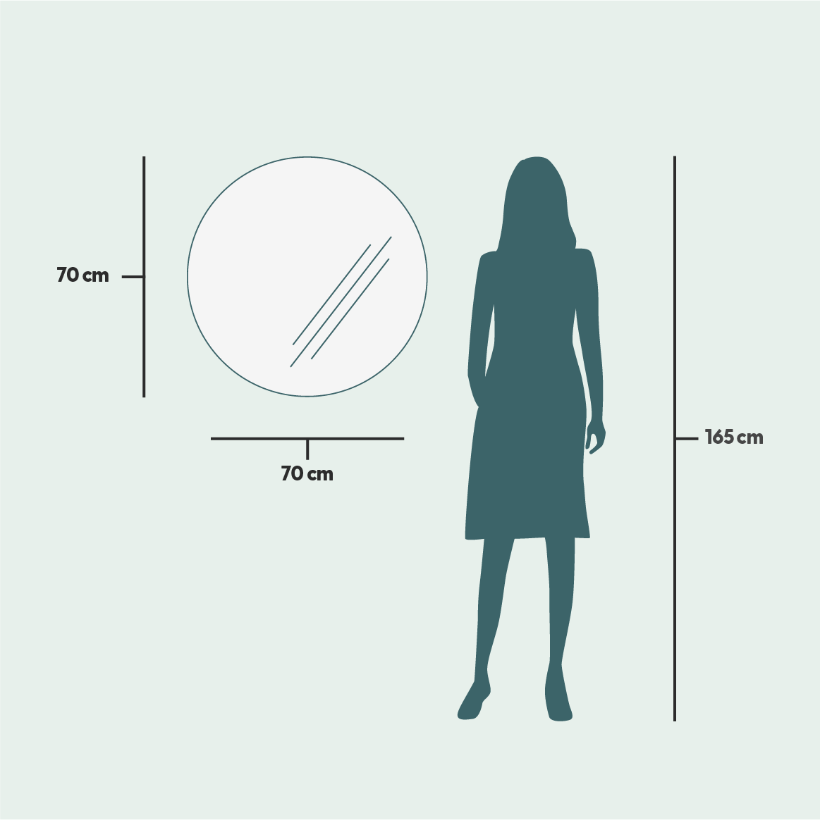 Spegelskåpet har en slående design med en total bredd på 70 cm och en höjd på 70 cm. Bakom spegeln finns ett förvaringsutrymme på 50×45 cm. Inuti skåpet finns en glashylla. Skåpet erbjuder plats för en eller två personers viktigaste skönhets- och hygienprodukter.